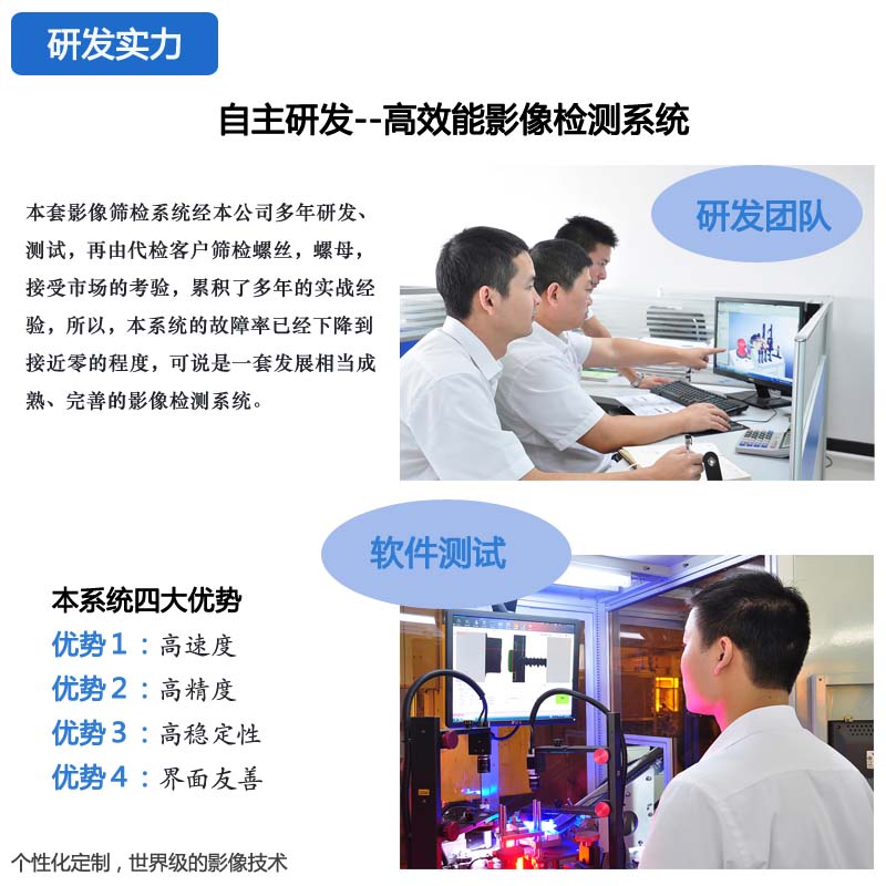 設備檢測范圍寬:可以檢測螺絲、螺母、手機零配件、汽車配件、航空緊固件、塑膠產品、磁芯產品等。