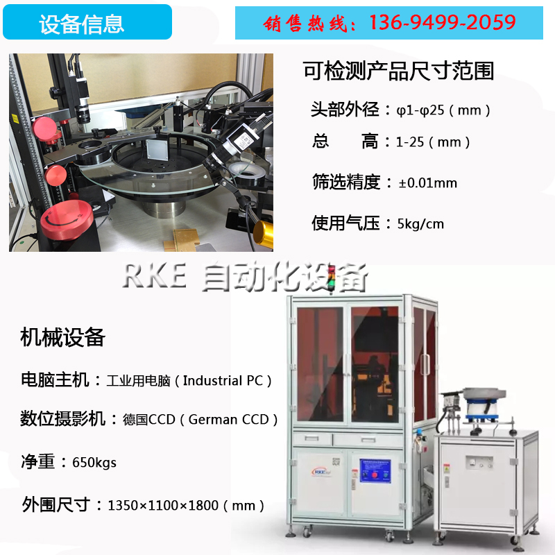 主要是檢測(cè)螺絲頭部直徑、多段高度頭厚、十字塞孔、頭裂、牙外徑、牙距、
