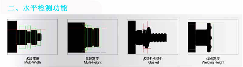 主要是檢測(cè)螺絲頭部直徑、多段高度頭厚、十字塞孔、頭裂、牙外徑、牙距、牙高度、牙角度、斜牙、外裂、側(cè)裂等。 |