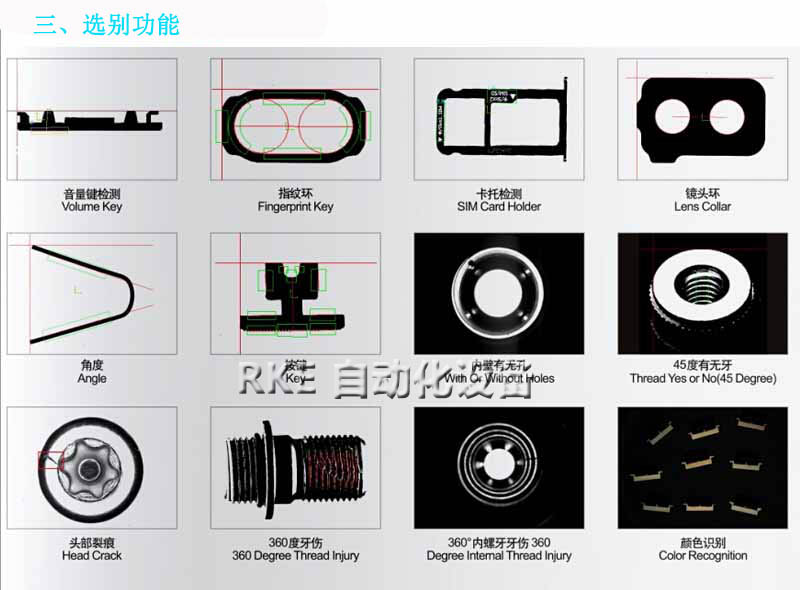 檢測產品的頭部直徑、多段高度、頭厚、牙外徑、垂直度、搓牙不良 |